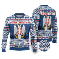 Personalized Serbia Christmas Ugly Christmas Sweater Coat Of Arms - Blue Version