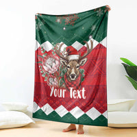 Personalized South Africa Christmas Blanket Springbok With King Protea