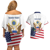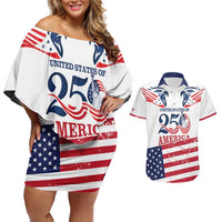 Personalized United States 250th Anniversary Couples Matching Off Shoulder Short Dress and Hawaiian Shirt USA 4th Of July Proud