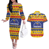Personalized Venezuela Christmas Couples Matching Off The Shoulder Long Sleeve Dress and Hawaiian Shirt Feliz Navidad