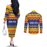Personalized Venezuela Christmas Couples Matching Off The Shoulder Long Sleeve Dress and Long Sleeve Button Shirt Feliz Navidad LT01
