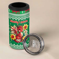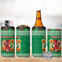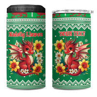 Personalized Wales Christmas 4 in 1 Can Cooler Tumbler Cute Red Welsh Dragon and Daffodils