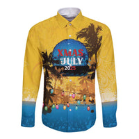 Personalized Xmas in July 2025 Long Sleeve Button Shirt Caribbean Summer Christmas
