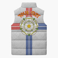 Get your Personalized Yorkshire Celtic Heritage Sleeveless Puffer Jacket Cross Style by Wonder Print Shop today and experience warmth, style, and versatility in one perfect piece.