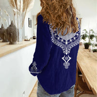 Printed Dashiki African Women Casual Shirt Blue DT02