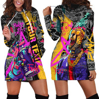 Punk Cheetah Graffiti Hoodie Dress with Punk Not Dead Street Art and Neon Jungle Design TS04