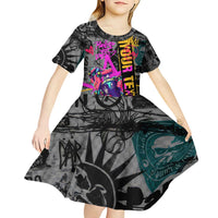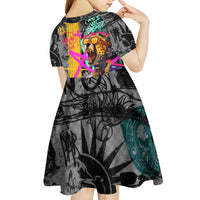 Punk Cheetah Graffiti Kid Short Sleeve Dress with Punk Not Dead Street Art and Neon Jungle Design TS04