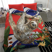 Pura Vida Costa Rica Sloth Bedding Set Tropical Flowers Flag Color