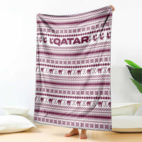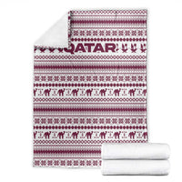 Qatar Christmas Blanket with Maroon-White Pattern, National Emblem, and Camel Motif