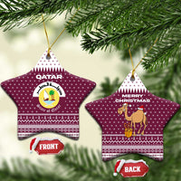 Qatar Christmas Ceramic Ornament with Maroon-White Design, National Emblem, and Camel Motif