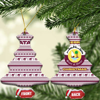Qatar Christmas Ceramic Ornament with Maroon-White Pattern, National Emblem, and Camel Motif TS04