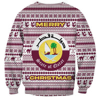 Qatar Christmas Sweatshirt with Maroon-White Pattern, National Emblem, and Camel Motif
