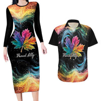 Rainbow Maple Leaf Couples Matching Long Sleeve Bodycon Dress and Hawaiian Shirt Canada Pride Show Your Colors