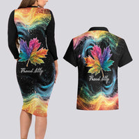 Rainbow Maple Leaf Couples Matching Long Sleeve Bodycon Dress and Hawaiian Shirt Canada Pride Show Your Colors LT9