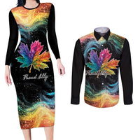 Rainbow Maple Leaf Couples Matching Long Sleeve Bodycon Dress and Long Sleeve Button Shirt Canada Pride Show Your Colors