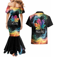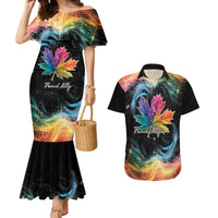 Rainbow Maple Leaf Couples Matching Mermaid Dress and Hawaiian Shirt Canada Pride Show Your Colors