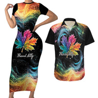 Rainbow Maple Leaf Couples Matching Short Sleeve Bodycon Dress and Hawaiian Shirt Canada Pride Show Your Colors