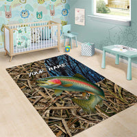 Rainbow Trout Fishing Area Rug with Camouflage Reeds and Forest Background in Nature-Inspired Colors TS04