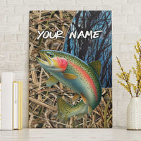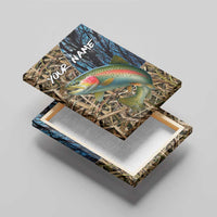 Rainbow Trout Fishing Canvas Wall Art with Camouflage Reeds and Forest Background in Nature-Inspired Colors TS04