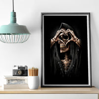 Reaper Heart Canvas Wall Art Eternal Embrace - Uniting Souls in the Realm of Skulls