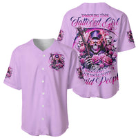 Reaper Skull Baseball Jersey Warning This Tattooed Girl Doesn't Play Well With Stupid People DT01