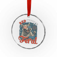 Red White and Feral Raccoon Crystal Glass Ornament Funny Patriotic Fireworks Wild 4th of July Vibes TS02