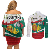 Republic of Bulgaria Personalized Couples Matching Off Shoulder Short Dress and Long Sleeve Button Shirt Crowned Golden Lion Suedinenieto Pravi Silata