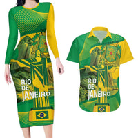 Rio de Janeiro Brazil Couples Matching Long Sleeve Bodycon Dress and Hawaiian Shirt Christ the Redeemer Mix Sugarloaf Mountain