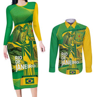 Rio de Janeiro Brazil Couples Matching Long Sleeve Bodycon Dress and Long Sleeve Button Shirt Christ the Redeemer Mix Sugarloaf Mountain LT14