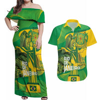 Rio de Janeiro Brazil Couples Matching Off Shoulder Maxi Dress and Hawaiian Shirt Christ the Redeemer Mix Sugarloaf Mountain