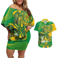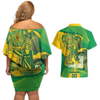 Rio de Janeiro Brazil Couples Matching Off Shoulder Short Dress and Hawaiian Shirt Christ the Redeemer Mix Sugarloaf Mountain LT14
