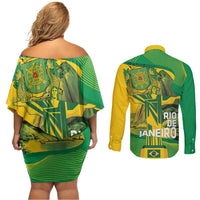Rio de Janeiro Brazil Couples Matching Off Shoulder Short Dress and Long Sleeve Button Shirt Christ the Redeemer Mix Sugarloaf Mountain LT14