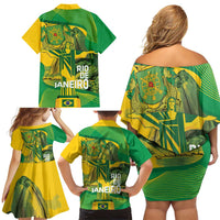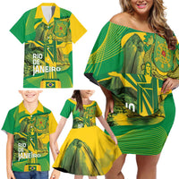 Rio de Janeiro Brazil Family Matching Off Shoulder Short Dress and Hawaiian Shirt Christ the Redeemer Mix Sugarloaf Mountain