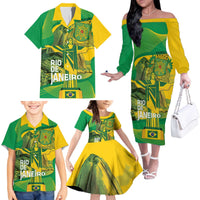 Rio de Janeiro Brazil Family Matching Off The Shoulder Long Sleeve Dress and Hawaiian Shirt Christ the Redeemer Mix Sugarloaf Mountain LT14