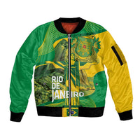 Rio de Janeiro Brazil Sleeve Zip Bomber Jacket Christ the Redeemer Mix Sugarloaf Mountain