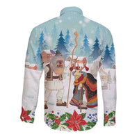 Romania Christmas Long Sleeve Button Shirt Romanian Folklore Traditional Christmas Mask
