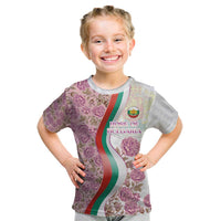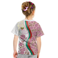 Rose of Bulgaria Kid T Shirt with National Flag Ribbon and Floral Damask Pattern TS04