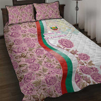 Rose of Bulgaria Quilt Bed Set with National Flag Ribbon and Floral Damask Pattern