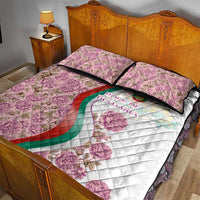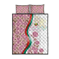 Rose of Bulgaria Quilt Bed Set with National Flag Ribbon and Floral Damask Pattern TS04
