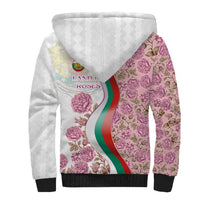 Rose of Bulgaria Sherpa Hoodie with National Flag Ribbon and Floral Damask Pattern TS04