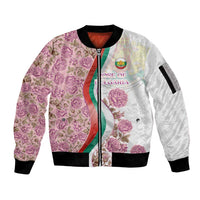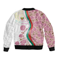 Rose of Bulgaria Sleeve Zip Bomber Jacket with National Flag Ribbon and Floral Damask Pattern