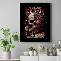 Rose Skull Canvas Wall Art My Give A Fuck Is Broken But My Go Fuck Yourself Is Functional DT01
