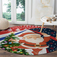Russia Christmas Round Carpet with Dancing Santa Christmas Tree Lights and Red Snowflake