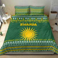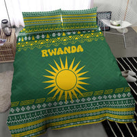 Rwanda Christmas Bedding Set with Green-Yellow Pattern, National Emblem, and Radiant Sun Motif