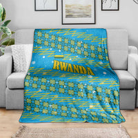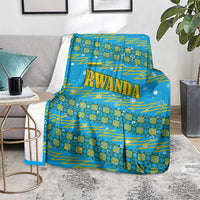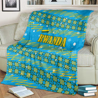 Rwanda Christmas Blanket with Blue-Yellow Pattern, Festive Geometric Motifs, and Bold Typography