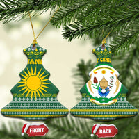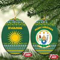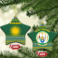 Rwanda Christmas Ceramic Ornament with Green-Yellow Pattern, National Emblem, and Radiant Sun Motif