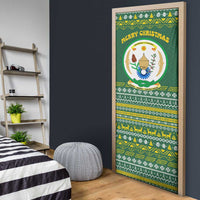 Rwanda Christmas Door Cover with Green-Yellow Pattern, National Emblem, and Radiant Sun Motif TS04