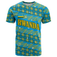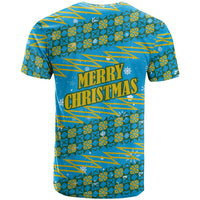 Rwanda Christmas T Shirt with Blue-Yellow Pattern, Festive Geometric Motifs, and Bold Typography TS04