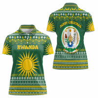 Rwanda Christmas Women Polo Shirt with Green-Yellow Pattern, National Emblem, and Radiant Sun Motif