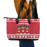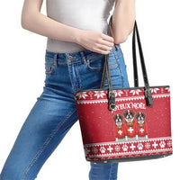 Saint Bernard Dog Switzerland Christmas Leather Tote Bag